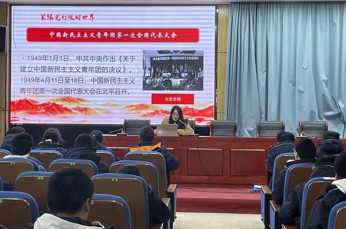 2023年2月22日中午,点点手机版下载官网app校团委以“敢叫日月换新天”为主题开展了2022-2023学年入团积极分子团课第3讲。本次团课由政教处胡双燕老师主讲。