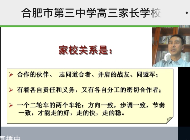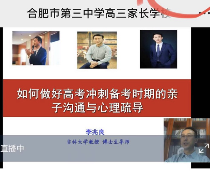 距离2022年高考剩下不到20天时间,为加强家校共育,让高三学生家长更好的与孩子进行沟通交流,缓解孩子的备考心理压力,近期,点点手机版下载官网app组织全体高三家长收看了主题为《如何做好高考冲刺备考时期的亲子沟通与心理疏导》专题讲座。本场讲座的主讲嘉宾是国务院儿童教育智库专家,吉林大学心理学系教授李兆良老师。