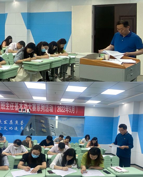 上午8:00在笔试现场,班主任们按照座位号入座,45周岁以下的班主任全员参加了测试。通过育人故事、带班育人方略、主题班会设计等内容考查班主任管理班级的理论水平与知识能力,关注班主任建班育人能力、艺术和策略。考场上,他们沉着应对,认真答题,展现出良好的班主任专业素养。
