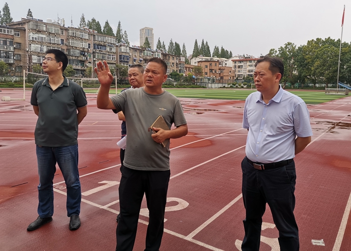 一行人首先来到操场,对操场围墙加固工程进行验收。施工方负责人从加固方法、施工工艺到建筑材料分别做了详细介绍。毛晓斌亲自查验了材料质量,从施工的细节方面提出了整改意见。随后,检查组又来到建于1984年的砖混结构艺惠楼。多年来,学校一直把艺惠楼作为安全防范的重点内容,为了检测该楼的安全性及荷载能力,今年暑期,通过公开招标方式引入一家专业检测机构对该楼进行安全鉴定,在鉴定施工现场,毛晓斌向技术人员详细地询问了诸多细节,并且指出,工作人员要充分认识到该项工作的重要性,鉴定工作要做到取样精准,数据精细、结论精确,最后得出的鉴定结论要负法律责任。