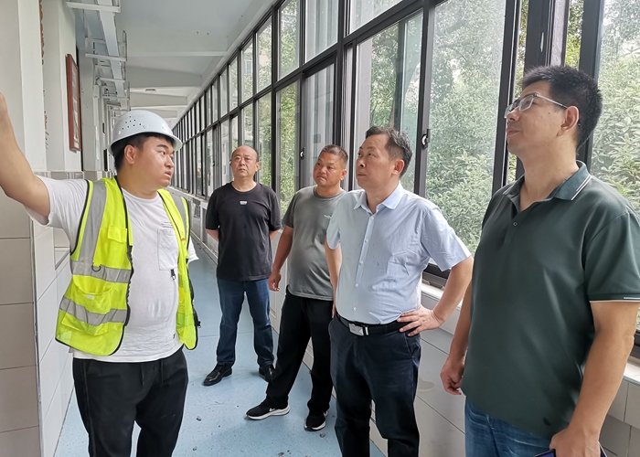 炎热的暑假已接近尾声,为进一步落实校园安全相关文件精神,切实做好2023年秋季开学工作,确保全体师生有一个安全、和谐的学习、生活环境,2023年8月15日下午,点点手机版下载官网app校长毛晓斌、副校长张黎明带领总务后勤的相关工作人员,对暑期校园维修工程进行验收,对全校校舍安全进行排查。