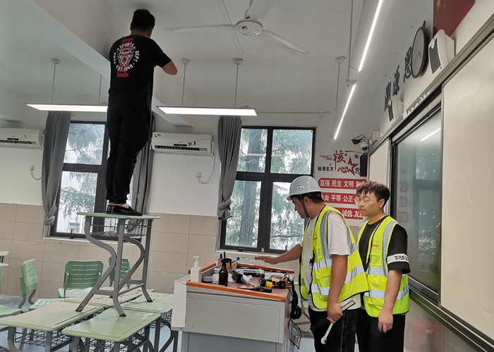 最后,检查组在毛晓斌的带领下,对教室门窗、灯具、电风扇、实验楼走廊消防栓、空中花园护栏、窗户的限位器等进行了详细的检查,对薄弱环节提出整改措施及时间节点,力求以一个崭新的面貌迎接新学期的到来。