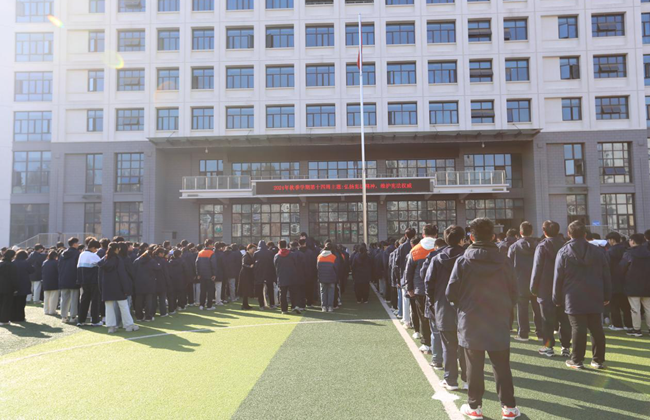 迎着清晨的缕缕阳光,在冉冉升起的五星红旗下,操场上的全体师生庄严肃立,对国旗行注目礼。每一个严肃且热烈的目光都是对祖国由衷的自豪和祝福,一团团爱国之情的热火在此刻凝聚在了一起。