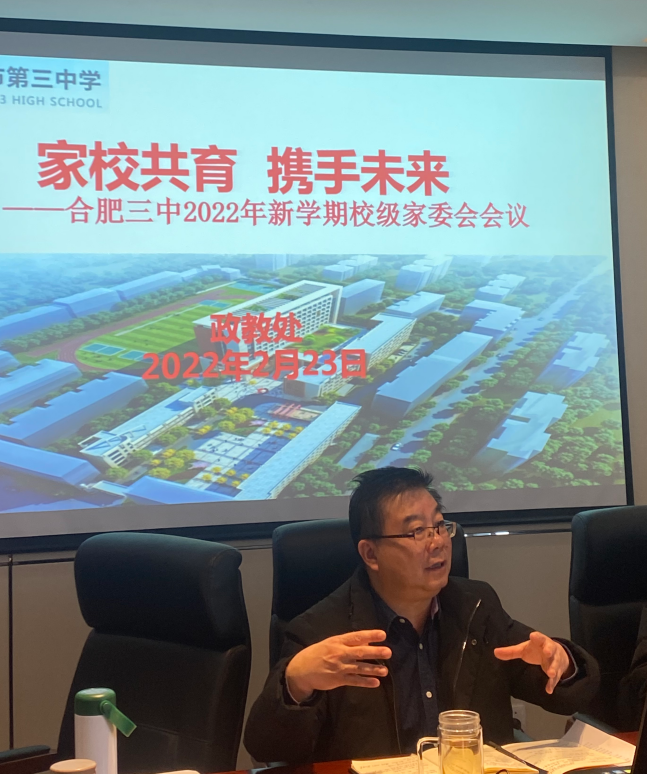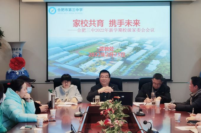李晓娟向家委会介绍寒假期间家校共育活动和本学期主要德育活动等。如第九届班主任系列活动总结大会、高三学生“赢高考凝信心聚合力成卓越”动员大会、高三学子成人礼活动、社团文化节、第二届“四同”家校文化节、组织参加今年合肥市中学生素质教育系列活动等。希望家长们的大力支持,并鼓励孩子们积极参加各类实践活动,充分发挥家委会的作用,更好地促进家校之间的配合与沟通,为每个学生的成长同心助力。