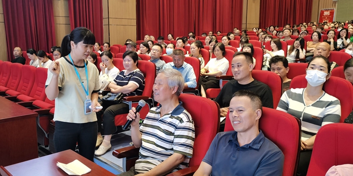 讲座从亲子关系现状、亲子矛盾的原因、和谐亲子关系的方法三个方面展开。讲座伊始,董小妹老师通过一则“小调查”,让家长们了解到了亲子关系总体现状。董老师指出,要建立良好的亲子关系,首先要知道亲子冲突的类型和亲子冲突所聚焦的内容。讲座中,董老师用生动有趣的语言,通俗易懂的事例,使家长们明确了亲子关系中矛盾的原因。