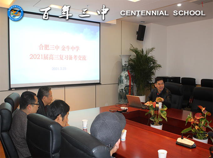 第三阶段是集中交流,高三年级部主任郑书建从年级的基本情况介绍、高三二轮备考策略、未来两个月工作计划等方面介绍了本级部的一些做法。随后,教学副校长陈卓谈了学校这几年所面临的压力,以及应对这些压力学校所采取的的一些教育教学改进措施,特别介绍了高三的复习备考指导思想。毛晓斌校长向金牛中学的领导和老师们详细介绍了三中的办学历史,“先成长、再成功、后成才”的办学思路,学校“一核两翼”的教学定位,以及学校在扩大办学规模、加入合肥集团化办学的一些构想。最后,金牛中学校长吴海洋详细介绍了他们的发展历史、校园文化、师生情况,并就教学方面和集体备课方面的一些做法和困惑与三中同仁进行深入交流。交流会上,两校领导纷纷表示这样的教研活动非常有意义,可以长期坚持下去。