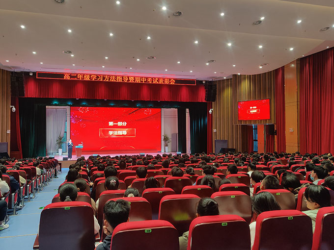 高二年级文理科学生代表闫佳怡、许鑫祥分别上台与同学们分享交流自己的学习经验。许鑫祥同学针对理科科目的特点,提出在日常学习中可以使用思维导图等方式来锻炼自己的逻辑思维,此外,错题的积累和反复练习也是取得进步的关键。闫佳怡同学认为,千里之行始于足下,文科的学习功在平时,功在积累,通过大量的阅读来拓宽知识面,不懈奋斗,向着目标一步一个脚印地前进。两位同学真诚的话语振奋人心,激起了同学们追赶上优秀代表步伐的激情。