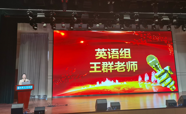 大会第一项,优秀教师代表王群老师进行了振奋人心的发言。 王老师首先向每位取得优异成绩的同学表示了祝贺,肯定了他们的辛勤耕耘,坚持不懈;同时鼓励全体学生“少年应有鸿鹄之志,当骑骏马踏平川”,拿出会当凌绝顶,一览众山小的胸襟与抱负,争取摘取属于自己的胜利果实。