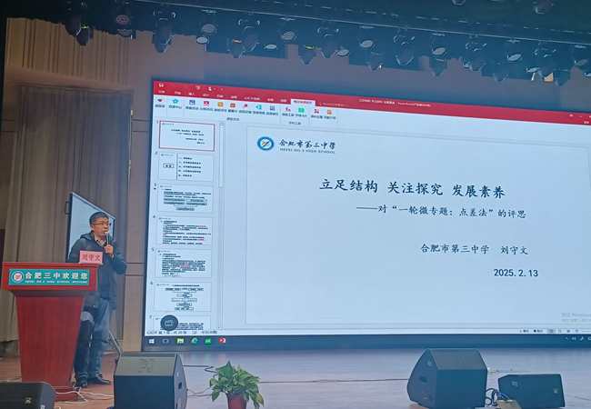 合肥市数学教研员沐方华主任分享了关于2025年高考数学的最新动态,并给全市高三数学教师提出了后程复习备考的建议:基于课标,深研真题,回扣教材;基于学情,精讲精练,注重规范。对全市高三教师的复习教学工作提供了有效的指导。