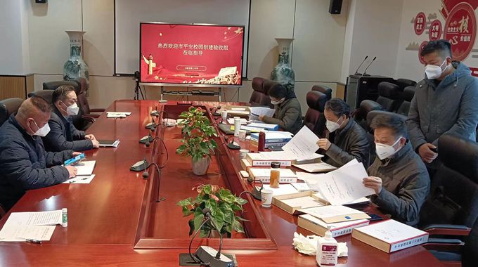 检查验收组领导及专家随后参照平安校园创建达标要求,逐条逐项对我校自查自评汇报材料的进行了梳理,并综合检查学校食堂、保健室、心理辅导室运动场以及危化品室,对我校消防安全、疫情防控、校园欺凌防溺水交通和校园周边环境等各类安全隐患的治理做评估审定。
