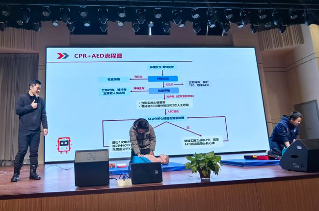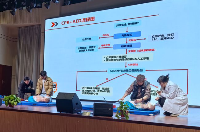高二(9)班学生李尚文表示:"以前只在影视剧里见过急救场景,今天亲手操作后才明白,每一个步骤都关乎生死。"高一教师张盖茨表示:"过去教学中更多是理论讲解,今天真正上手才发现细节决定成败——比如按压时手掌根部要对齐、手臂伸直避免发力偏差。"参与培训的校医夏医生特别强调:"AED设备是救命神器,但很多师生对它的使用存在误区。今天的实操能让大家熟悉开机语音提示、电极片贴放位置等关键步骤。"