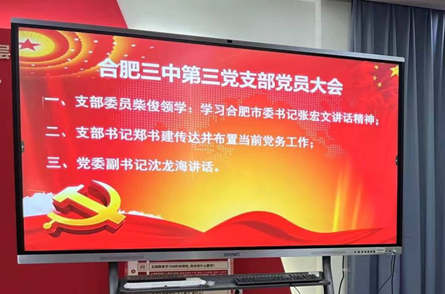 会议伊始,由支部委员柴俊带领大家集中学习安徽省委常委、合肥市委书记张红文深入教育系统宣讲党的二十届三中全会精神并调研教育工作的内容。    全体支部党员深刻认识到了张红文所强调的:教育是国之大者、党之大计,全市教育系统要深入学习贯彻党的二十届三中全会精神和习近平总书记关于教育的重要论述,全面贯彻党的教育方针,加快建设教育强市,用心用情办好人民满意的教育。全体支部党员重点学习了张红文提出的“要全面落实立德树人根本任务;要优化区域教育资源配置;要推进产教深度融合;要深化教育领域综合改革;要打造高素质教师队伍。”大家一致认为通过学习党的二十届三中全会精神及张红文的调研教育工作内容,为第三党支部的未来工作指明了方向。