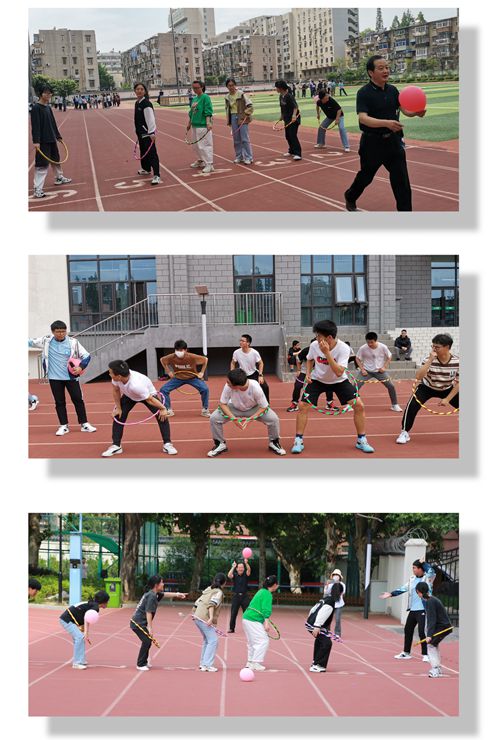 本次游园会主要设置了“珠行万里”、“同心鼓”、“螃蟹赛跑”、“踩爆压力球”等趣味活动,由高三级部主任滕智智、政教处负责人周齐及董小妹老师组织,陈磊和牛书玲老师参与协助。校长毛晓斌、副校长陈卓和杨庆吉来到活动现场,与同学们一起体验游戏带来的放松。整场活动中,全体高三学生热情参与,专注投入,在激情飞扬中挥洒着青春风采,在欢声笑语中释放了考前压力,操场上处处流动着活力四射的身影和一张张自信开朗的青春笑脸。下面让我们一起走进同学们的欢乐瞬间吧!