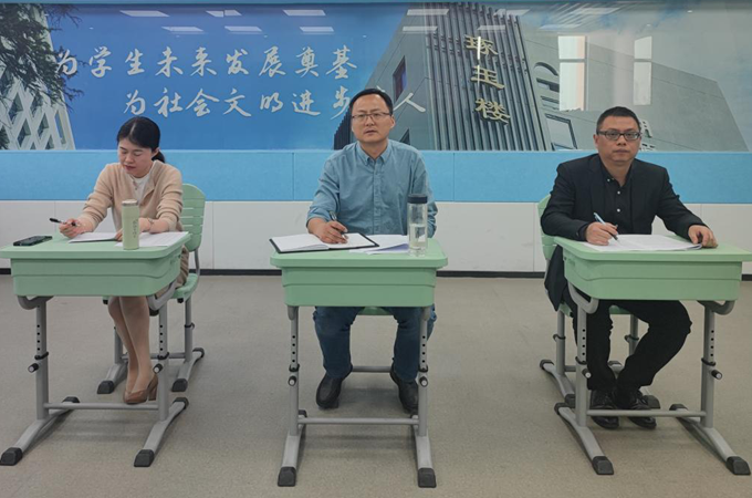 5月9日上午,面试复赛在君尧楼六楼录播教室进行。副校长杨庆吉、政教处老师周齐、孙晓亮老师担任评委。