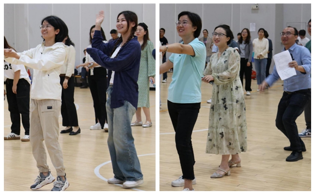 团辅活动开始前,由学校专职心理老师董小妹带领全体班主任进行有氧热身,跳起了节奏欢快、动感十足的拖拉机舞,现场气氛轻松明快,大家在欢声笑语中放松身心,悦纳自我。