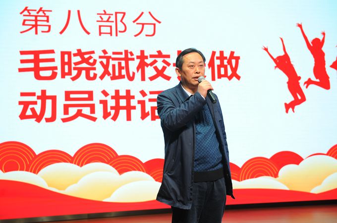校长毛晓斌作动员讲话,他讲述了2022北京冬奥会滑雪项目中,奥运冠军中国18岁少年苏翊鸣夺冠历程,鼓励同学们坚定信念,鼓足勇气,努力拼搏,一往无前,才能实现自己的理想!勉励同学们“放大个人的目标,放平自己的心态,放手尽力的拼搏,放心学校的承诺,放飞自由的翱翔”,相信在六月终会迎来属于自己的灿烂阳光。