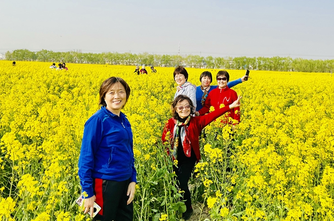 罗家疃油菜花海之地观光大自然美景,大家一路吹着微风,追逐阳光,感受户外沁人心脾的清新空气,都像老顽童一样笑脸满面,彼此漫步在花海间,伴随着春天的气息,仨俩结伴彼此问候语不断,聊起往日的工作情怀,如数家珍。此时,彼时,岁月静好。