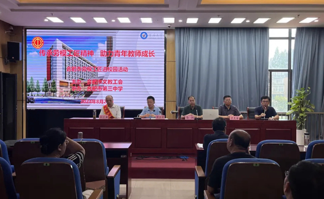 为了深入学习宣传党的二十大精神,进一步发挥劳模工匠的榜样引领作用,2024年8月20日上午,合肥市文教工会联合合肥市第三中学工会,开展了题为《传承工匠精神 助力青年教师成长》的合肥市劳模进校园活动,活动由点点手机版下载官网app工会主席吴思乡主持.