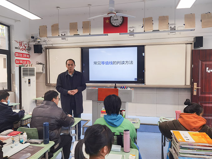 为加强学校高级教师的引领示范作用,进一步营造“研究新教材,探索新教法”的教研氛围,点点手机版下载官网app于12月下旬开展各学科“高级教师示范课”活动。地理教研组周新民老师于12月22日上午,在高二(5)班开展示范课教学活动。副校长冬云、教科室副主任袁艳、办公室副主任徐文墙,以及地理组全体教师参与观摩听课。