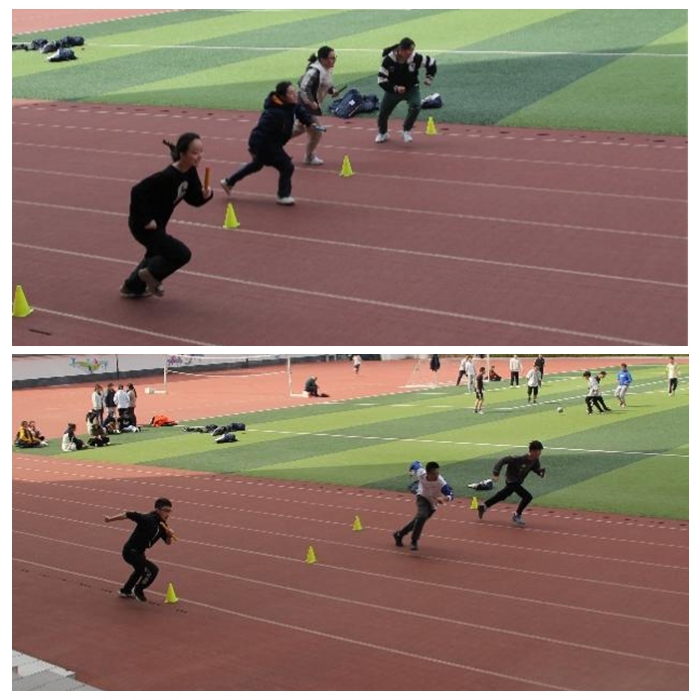 学生分组进行迎面接力小组赛