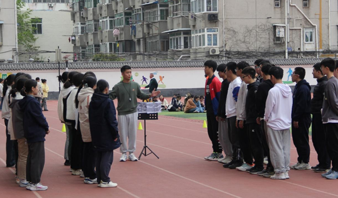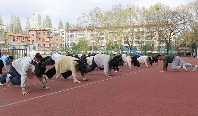 教师带领学生进行体能练习