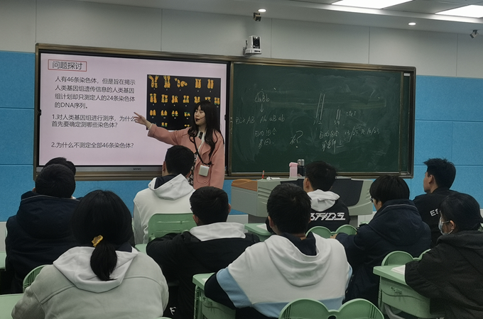 李婷老师在围绕“基因在染色体上的实验证据”内容的讲解中,充分发展了学生的思维,带领学生一一推导各种假说是否正确。课堂上,李婷老师以学生为主体,注重与学生的互动,让学生沉浸在生物课堂的学习中。