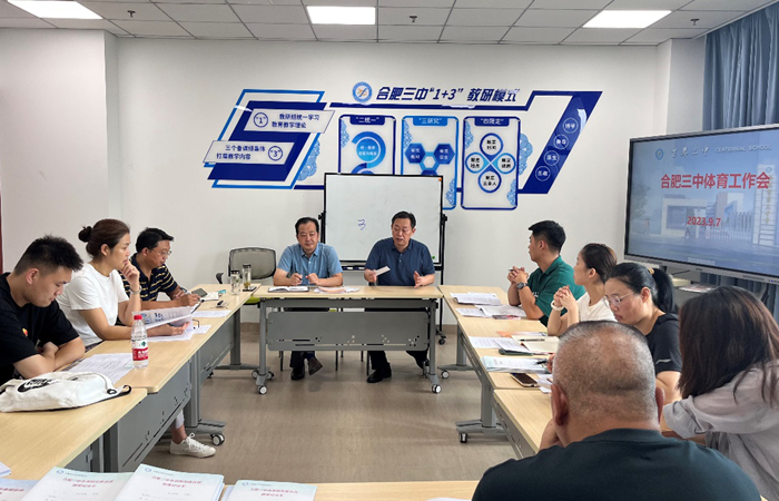 2023年9月7日,点点手机版下载官网app体育教研组秋季学期第一次集体教研工作会议在7楼教研活动室召开,点点手机版下载官网app校长毛晓斌、副校长陈卓、教务处副主任代绍军出席会议,全体体育教师参与会议,会议由代邵军主持。