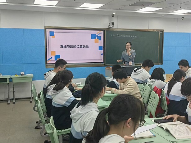 10月26日下午,高二年级的贺如梦老师与郑李云老师开展了课题为《直线与圆的位置关系》的同课异构,贺老师从单元学习的框架引入新课题,引导学生从两个方面认识并掌握直线与圆的位置关系判断方法,语言清晰,板书规范。郑老师通过对直线与直线的交点,点与圆的位置关系的复习引入新课,课堂中与学生充分互动,环环相扣,体现了以生为本的教学理念。
