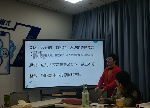 思辨教学需要汲取营养以便不断向前发展。教研伊始,语文组何海燕老师围绕“关联·思辨·整合” 这一主题展开研讨。她从新课程视域下的整本书阅读、思辨性阅读与表达任务设计、2023年语文高考试题的变化与启示意义三个方面谈了对“思辨”课题的学习心得体会。何海燕老师谈了基于思辨读书的整本书阅读的融合与应用,强调要知行合一,使关联、思辨、整合的理念在语文教学的整本书阅读与表达任务设计中发挥作用,以提升语文教师的育人能力。