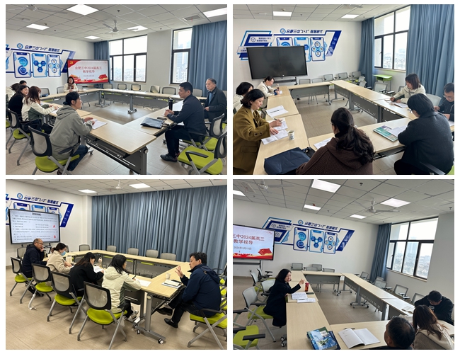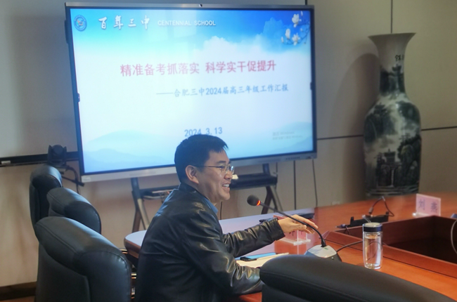 市教科院副院长陈明杰、学科教研员、兄弟学校学科专家在听取级部工作报告后,结合上午的课堂教学检查情况,集中反馈高三视导情况,并对后期的复习工作做出指导。陈明杰副院长指出,高三复习工作既要精要,又要明确,要在学校管、教师教、学生学、课堂效率、资料挑选、诊断适度等六个方面做好统筹安排,讲话结束,他预祝三中在2024年的高考中取得佳绩。