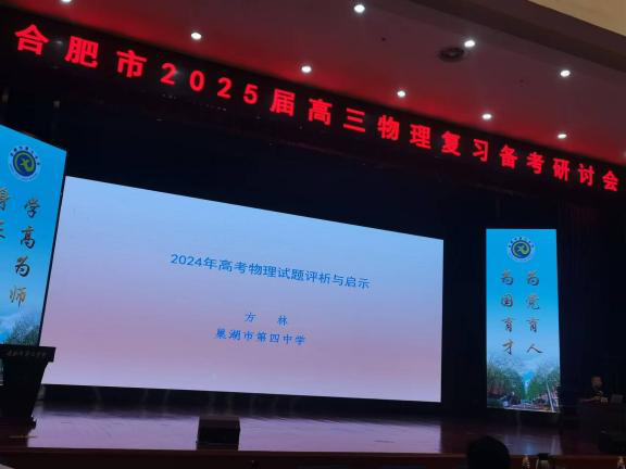 会议的第一项议程由来自巢湖四中的方林老师主讲,他围绕“2024年高考物理试题评析与启示”这一主题,为参会教师呈现了一场精彩纷呈的报告。方老师凭借丰富的教学经验和对高考命题趋势的深刻理解,对去年高考物理试题进行了全面剖析,揭示了试题背后的考查意图和命题规律。他强调,高考物理不仅考查学生的基础知识掌握情况,更注重对学生物理思维、实验能力和解决实际问题能力的综合考察。通过具体的案例分析,方老师为教师们提供了宝贵的备考启示,鼓励大家在复习中深挖教材、参考往年真题卷和模拟卷,注重培养学生的综合素质,为学生的全面发展奠定坚实基础。