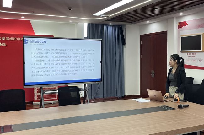 会议第一项为2023年立项课题的中期评估。课题组负责人张丁根老师、张嘉柔老师、张丽娟老师、张露露老师和汤雨莹老师以严谨的态度,详细而全面地进行课题研究中期汇报,分别从课题核心概念界定、研究目标、研究内容、研究方法、研究计划落实情况、阶段性成果情况、课题研究存在的问题与反思、课题研究后续设想等方面进行课题中期总结汇报,展示了课题研究的进展与成效。