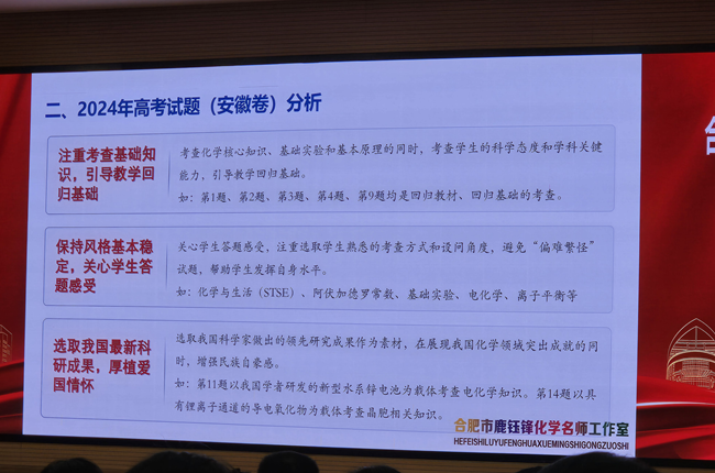 为总结并交流高三教学与复习的成功经验,共享高质量教育资源,确保精准掌握高考化学命题改革的发展趋势及2025届高三教学方向,提升复习备考工作的实效性与针对性,2024年9月5日,点点手机版下载官网app高三化学教研组全体教师积极参与了由合肥市化学教研员陈文静主任主持的2025届高三化学复习备考研讨会。