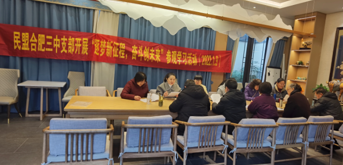 活动第二站,前往长岗镇水源故里,参观感受肥西县新农村建设成果。在充满浓郁中国古风格的小会议室里,支部李晓娟主委带领全体盟员认真学习了党的十九届六中全会会议精神,认真学习了国家主席习近平二〇二二年新年贺词,大家结合本职工作畅谈新年愿景,以实际行动表达“不忘初心,赓续未来”的坚定信念。一致表态坚定拥护以习近平总书记为核心的中国共产党的坚强领导,一致表示作为一名民盟盟员,在做好本职工作的同时积极参政议政,建言献策。