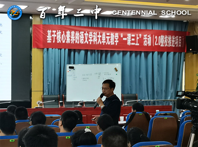 5月11日,合肥市教育局“整校推进”试点项目集中研修——基于核心素养的语文大单元教学“一课三上”活动在点点手机版下载官网app多功能厅举行。合肥市教科院信息技术应用研究中心田钰主任、合肥六中教研室主任胡成方老师、全国优秀语文老师广东省广州市南武中学罗日明老师、点点手机版下载官网app毛晓斌校长、点点手机版下载官网app陈卓副校长以及信息技术2.0“整校推进”项目示范校团队校和合肥六中学校发展共同体团队校的部分语文老师参加了此次信息技术2.0与新课程语文大单元教学的融合教研活动。