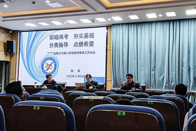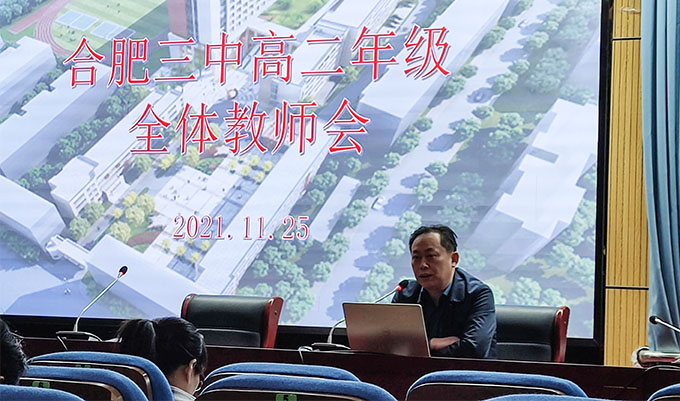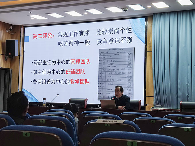 会议第二项,高二年级部滕智智主任就期中教学质量检测情况进行汇报。他对本年级各学科、各班级成绩进行多维度分析与评价,让与会老师结合实际教学情况对各自班级的学情有了进一步了解。滕主任特别强调任课教师要关注班级每个孩子的薄弱科目,尤其是“尖子生”。要及时转变他们对学科的错误认识,让他们在行为上约束自己,管理好自己,并保持严谨的态度和进步的势头,这样才会有榜样作用以激励班级。总之,教育要因人而宜,因势利导,着眼于效果。