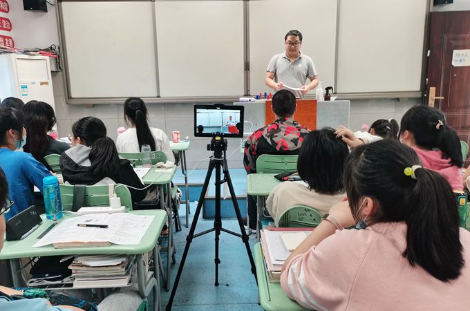 学校技术部门当即开展同步教学手段的测试,他们同时在不同班级开展摄像头、手机、平板电脑的直播测试。在对比不同的测试数据后,选定了适合学校情况的直播方式,及时购买了便携直播设备。很快点点手机版下载官网app同步直播教学在有学生居家观察的班级全面展开。