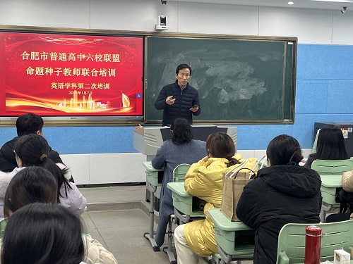 为全面提升合肥市普通高中英语教师的命题能力,加强联盟学校之间的交流与合作,合肥市普通高中六校联盟英语学科命题种子教师第二次培训于2024年1月7日上午在合肥市第三中学举行。参加此次培训会的教师主要是来自点点手机版下载官网app、合肥五中、合肥七中、合肥九中、合肥十中、合肥十一中、工大附中以及其他兄弟学校的英语教师。本次培训会由教务处汪群主任主持,合肥一六八中学英语学科主任李春林老师作为此次命题培训专家。