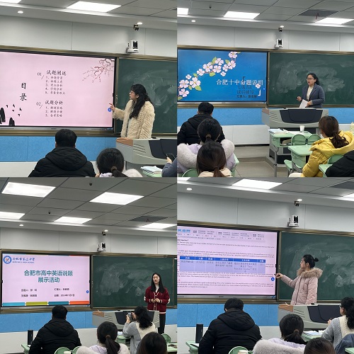 七所学校首先进行抽签,按照抽签顺序1-7号依次进行题目设计分享,各校教师代表从试题阐述和试题分析两大方面着手讲解本组命题历程和命题思路。每个学校命题逻辑清晰,都对命题素材做了合理化的修改,使之最大化的体现出英语学科的核心素养。