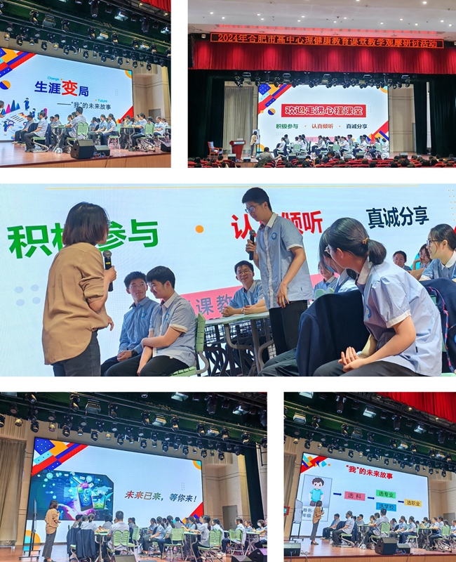 随后,合肥四中的黄莹老师和合肥八中的闫榕榕老师分别展示了《相遇在五月,唤醒行动力》和《生涯变局——我的未来故事》两节精彩的心理课。