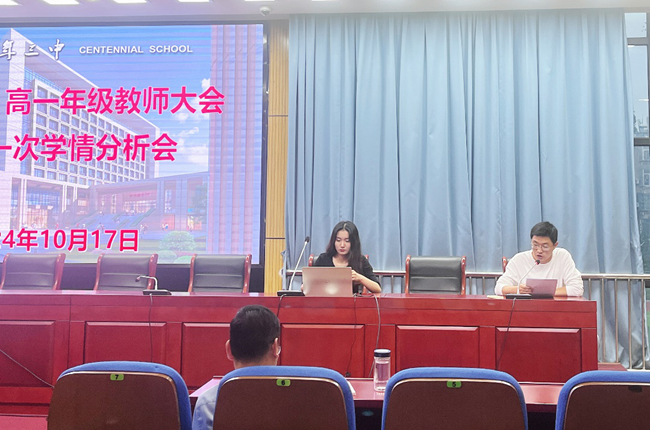 2024年10月17日,点点手机版下载官网app高一年级在多功能厅召开高一年级教师会。会议的主要内容为针对10月学情调研的结果进行分析,并制定相应的教学策略。点点手机版下载官网app副校长陈卓、级部主任郑书建及全体高一年级教师出席会议,会议由高一年级部德育委员董文棣主持。