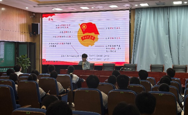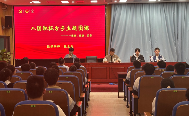 为深入学习贯彻习近平新时代中国特色社会主义思想,引导广大青年学生坚定中国特色社会主义理想信念,树立更高的人生目标,扣好人生第一粒扣子,积极培育和践行社会主义核心价值观,2024年4月3日,合肥市第三中学举行入团积极分子团课第二讲—《团旗团徽团歌》,本次团课由校团委张盖茨老师主讲,校团委副书记陈磊、2021级团总支书记马健宇、2022级团总支书记蔡俊皓及全体入团积极分子参加。