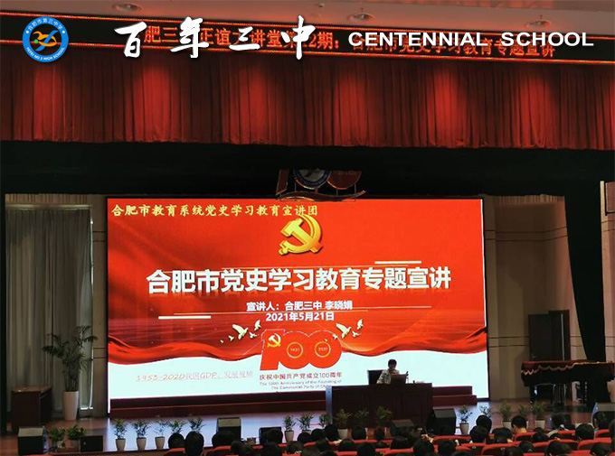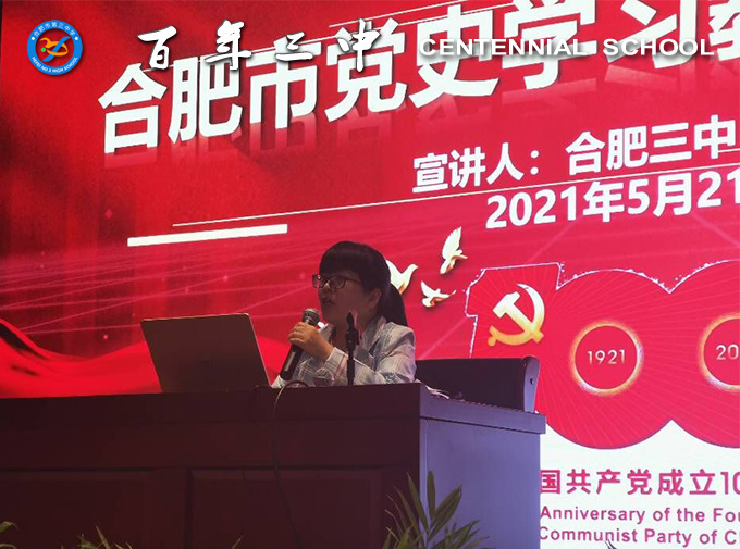 为庆祝中国共产党成立100周年,深入学习贯彻习近平总书记在党史学习教育动员大会上的重要讲话精神,教育引导团员青年做到学史明理、学史增信、学史崇德、学史力行,让红色基因代代传承。5月21日中午,点点手机版下载官网app团委在正谊讲堂组织全校团员开展了“学党史、强信念、跟党走”党史学习教育主题宣讲活动,合肥市教育系统教师骨干宣讲团成员、政教主任李晓娟担任主讲嘉宾,活动由团委副书记闫大钊主持。