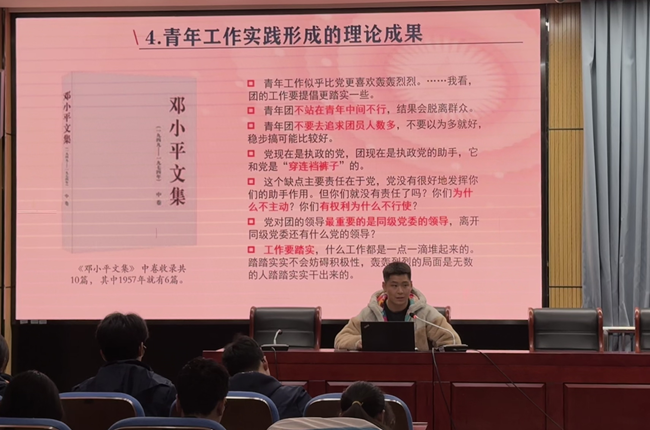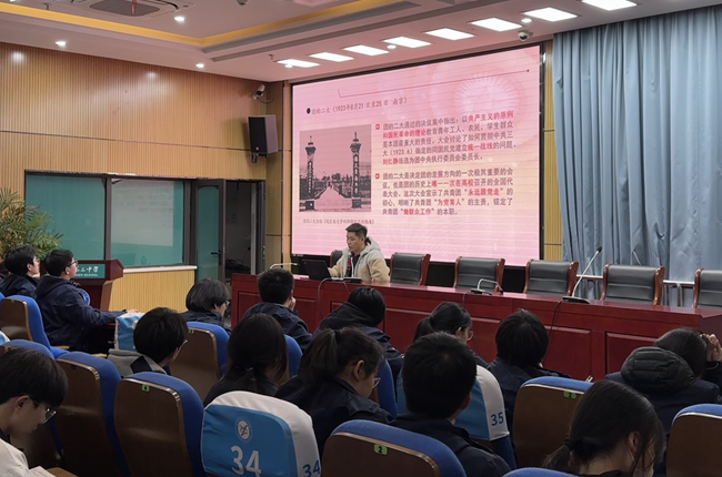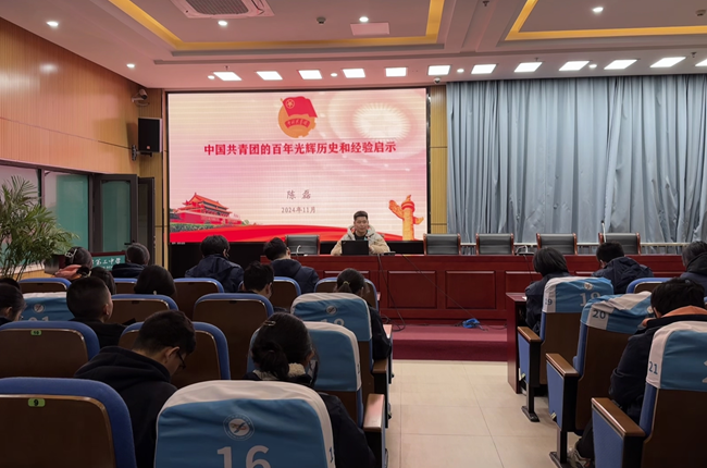 以史为鉴,开创未来。从团的发展阶段、团的历史事件,陈磊将一件件、一幕幕光辉团史娓娓道来,重点阐释了百年团史的启示和对共青团的新要求,鼓舞全体团员自觉承担新时代赋予青年的责任,用实际行动践行爱国主义精神,坚定信念跟党走,立大志、明大德、成大才、担大任,敢于有梦、勇于追梦、勤于圆梦,在奋斗中释放青春激情,追逐青春理想;以青春之我、奋斗之我,为民族复兴铺路架桥,为祖国建设添砖加瓦。