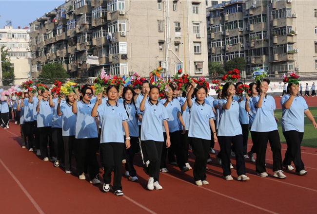 上午7点30分,运动会入场仪式在欢声笑语中正式拉开序幕。国旗队、鲜花队和彩旗队依次入场,步履整齐,气势轩昂。同学们用铿锵有力的步伐和热情洋溢的笑容,展现了新时代青少年的朝气与风貌。旗林猎猎,心跳怦怦,与方阵共鸣,激情澎湃,扬青春梦想。