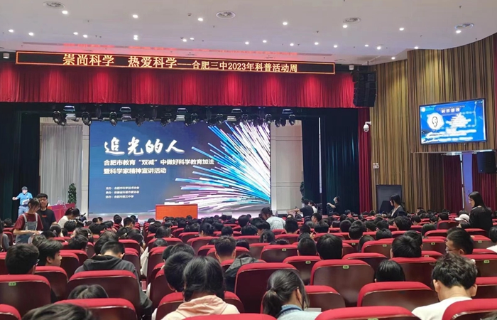 追逐量子之光,用智慧照亮人生。为弘扬科学精神,传播科学思想,增长科学知识,坚定学生爱国报国之志,5月31日下午,合肥市第三中学科信处联合高一年级部在正谊会堂组织了一场科普讲座,为同学们带来一场科学知识盛宴,高一年级全体学生参加。