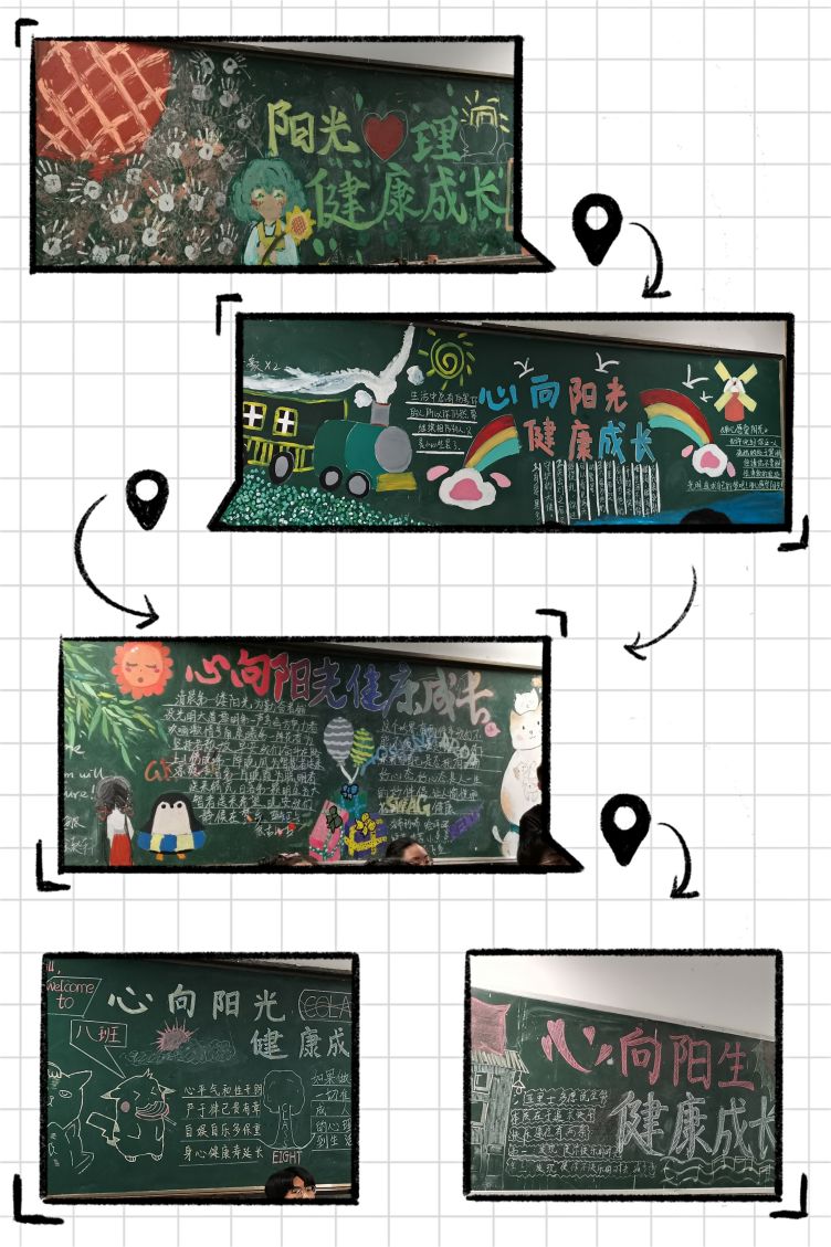 5月份,学校开展了主题为“心向阳光 健康成长”心理健康主题板报活动。活动中,同学们通过主动搜集素材、设计版面,精巧构思,以生动有趣的方式向大家宣传了心理健康知识,提高了认识自我、发展自我、完善自我的能力。