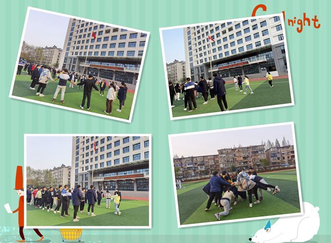 以班级为单位,在学校操场开展4期团体辅导活动,活动内容有:企鹅漫步、真心告白、6人七足、松鼠大树、贴膏药、无敌风火轮等,通过身体的活动,宣泄和释放复习和高考带来的压力,让学生的身心得到放松,以更加积极乐观的心态投入到复习中,跨过学习的高原期。