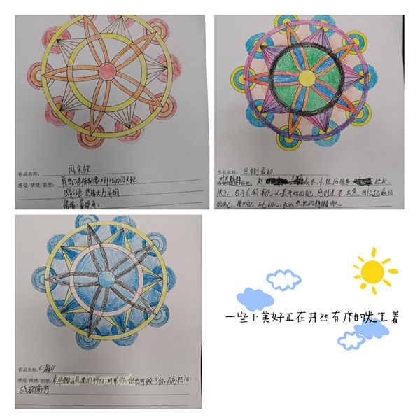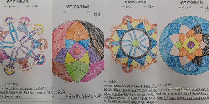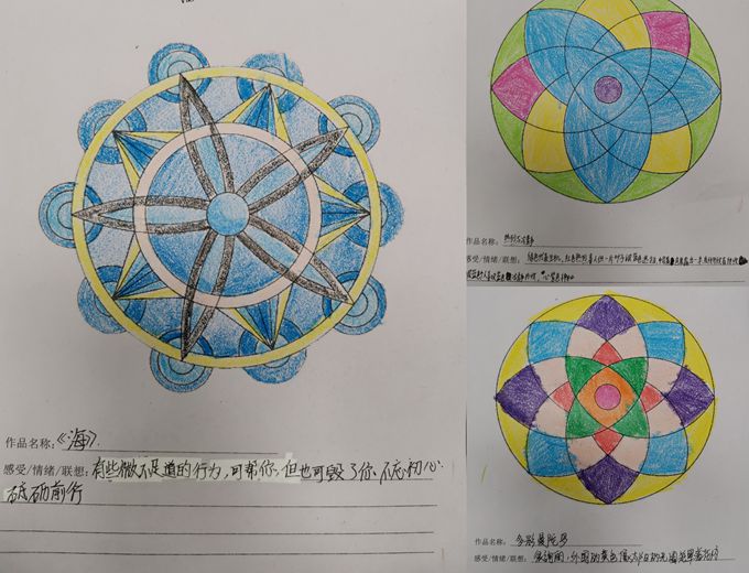 在满足绘画者安全感的前提下,自然而然地绘制图画。通过表达性的方式让内心中的对立面整合并重新建立秩序和平衡,帮助学生缓解焦虑、释放压力、疏导情绪、探索自我等,并学会用合理的方式去应对生活中的不如意,培养学生积极乐观的心理品质。