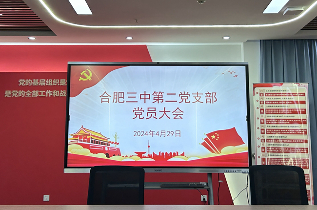 2024年4月29日下午,合肥市第三中学第二党支部在君尧楼七楼党建活动中心召开党员大会。此次会议由党支部书记蒋自路主持,全体党员参会。